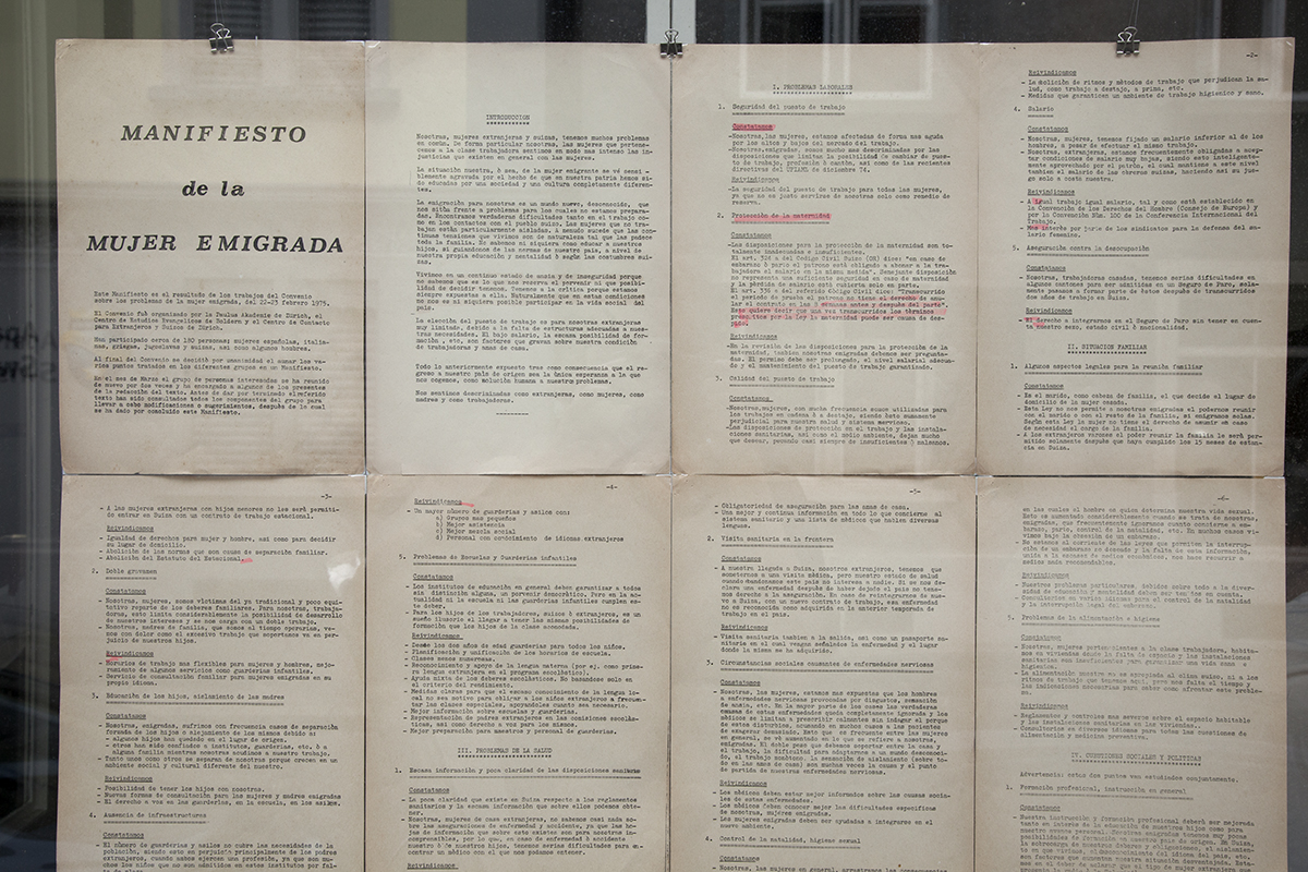 Oral history project and exhibition on the "Manifesto of Foreign Women" written by 180 women in Zurich in 1975.